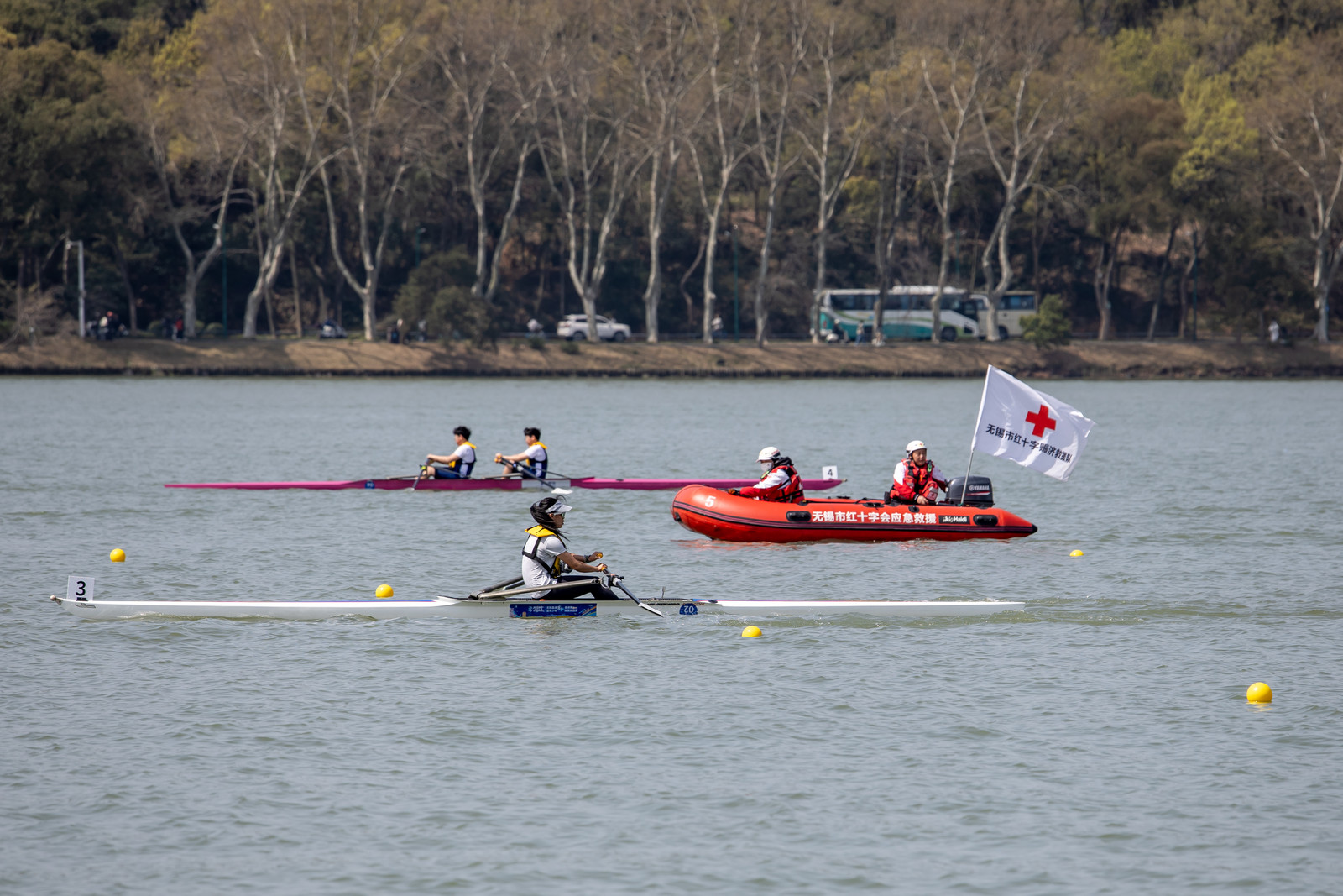 3月28日上午,“双湾融合、共创未来”2026无锡蠡湖赛艇邀请赛暨青少年赛艇精英挑战赛在蠡湖国际赛艇中心开赛。无锡市红十字赈济救援队受邀承担赛事水上安全与应急救护保障任务,共出动救援艇3艘、队员10名,以严密部署和专业值守为赛事保驾护航。