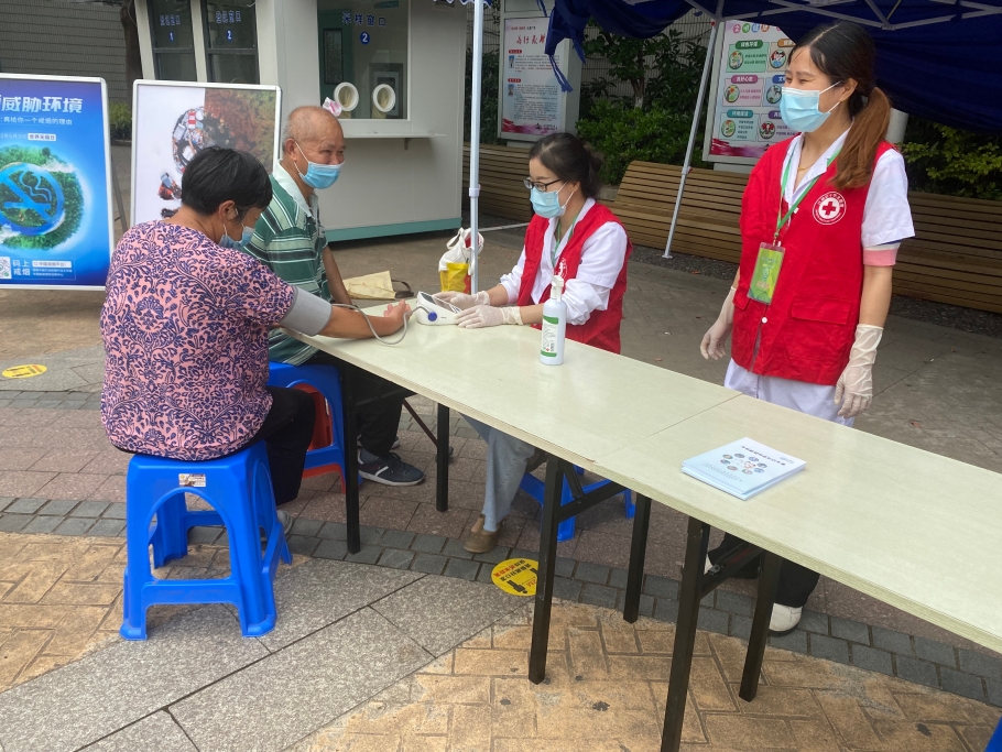 活动现场通过设立宣传服务咨询台,向群众发放禁烟控烟、健康防疫等宣传手册,现场讲解控烟健康教育知识和防疫知识,动员和号召广大群众自觉抵制公共场所和人群聚集地方的吸烟行为,发动身边的人远离烟草,减少烟草对环境的危害,营造无烟、清洁、健康的工作环境和公共环境,共建美丽健康幸福家园。红十字志愿者为群众免费量血压,并耐心解答群众关切的问题,呼吁群众不在室内、公共场所、工作场所和交通工具内吸烟,倡导群众远离烟草危害,共创一个健康无烟生活环境。