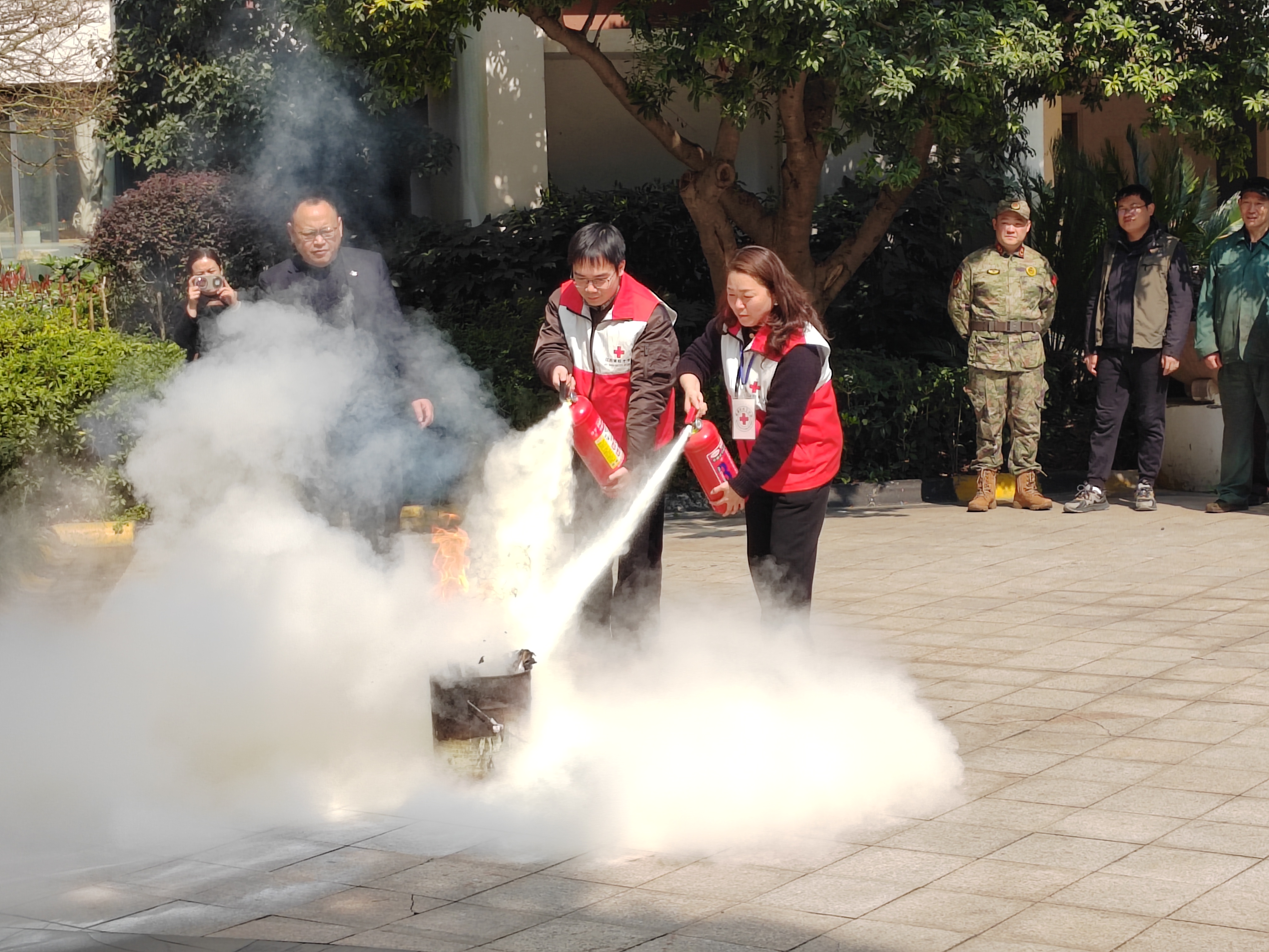 为切实提升辖区居民的消防安全意识与应急自救互救能力,筑牢社区安全防线,2026年3月13日,广益街道金宁社区红十字会携手梁溪城管广益中队,在金科观庭小区开展沉浸式消防逃生演习,社区红十字志愿者、城管队员、小区物业及居民代表共同参与了此次演习活动。